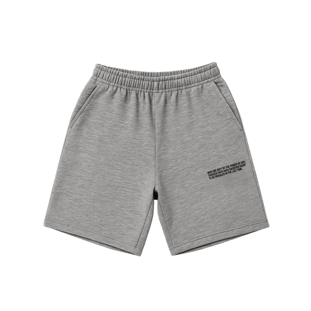 Built for the faithful. These premium-knit French Terry shorts feature our bold 1 Peter 1:5 reference — a reminder that we are “Kept by the Power of God through faith”. Designed for comfort, crafted for purpose. With a relaxed fit, deep pockets, and spiritual weight stitched into every thread, these shorts are more than a statement — they’re a testimony.
