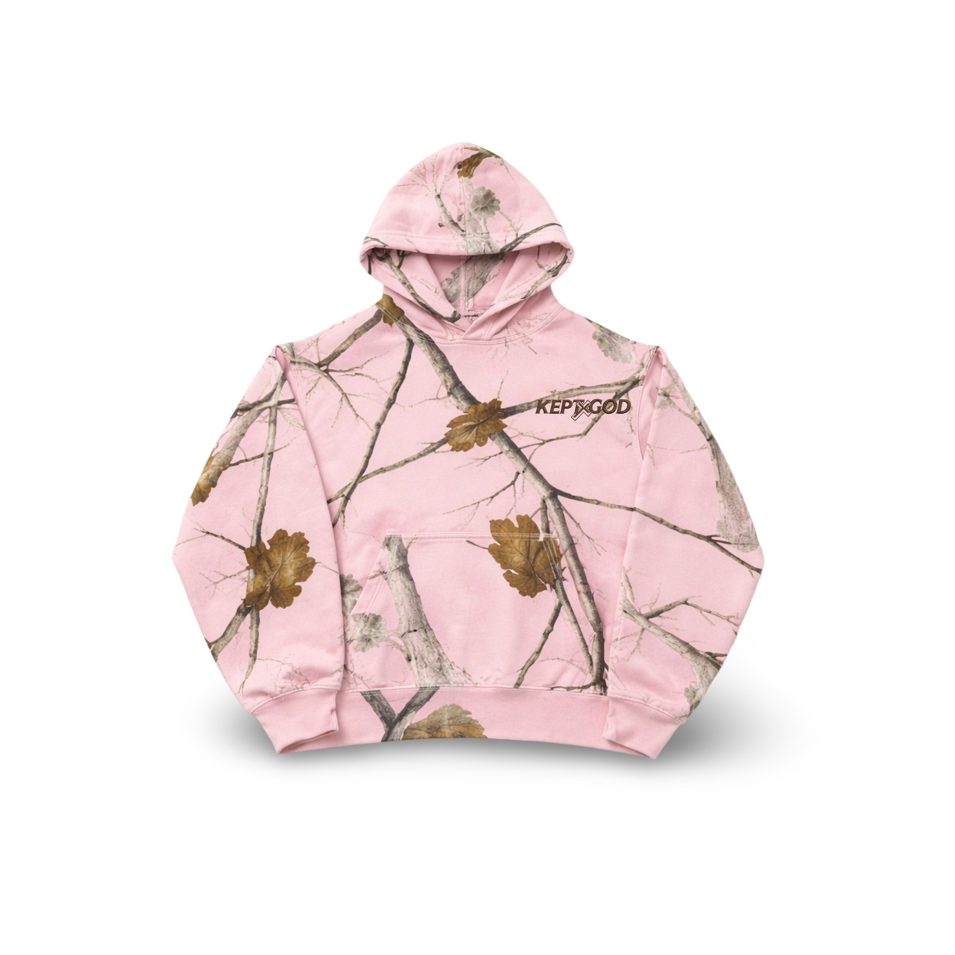 Introducing the Real Tree KEPTXGOD Boxy Hoodie in Washed Pink Camo. Built from heavyweight 480 GSM loopback cotton for structure, durability, and everyday comfort. This piece is cut in our signature Boxy Fit with dropped shoulders and a slightly cropped body, creating a bold silhouette with vintage attitude.