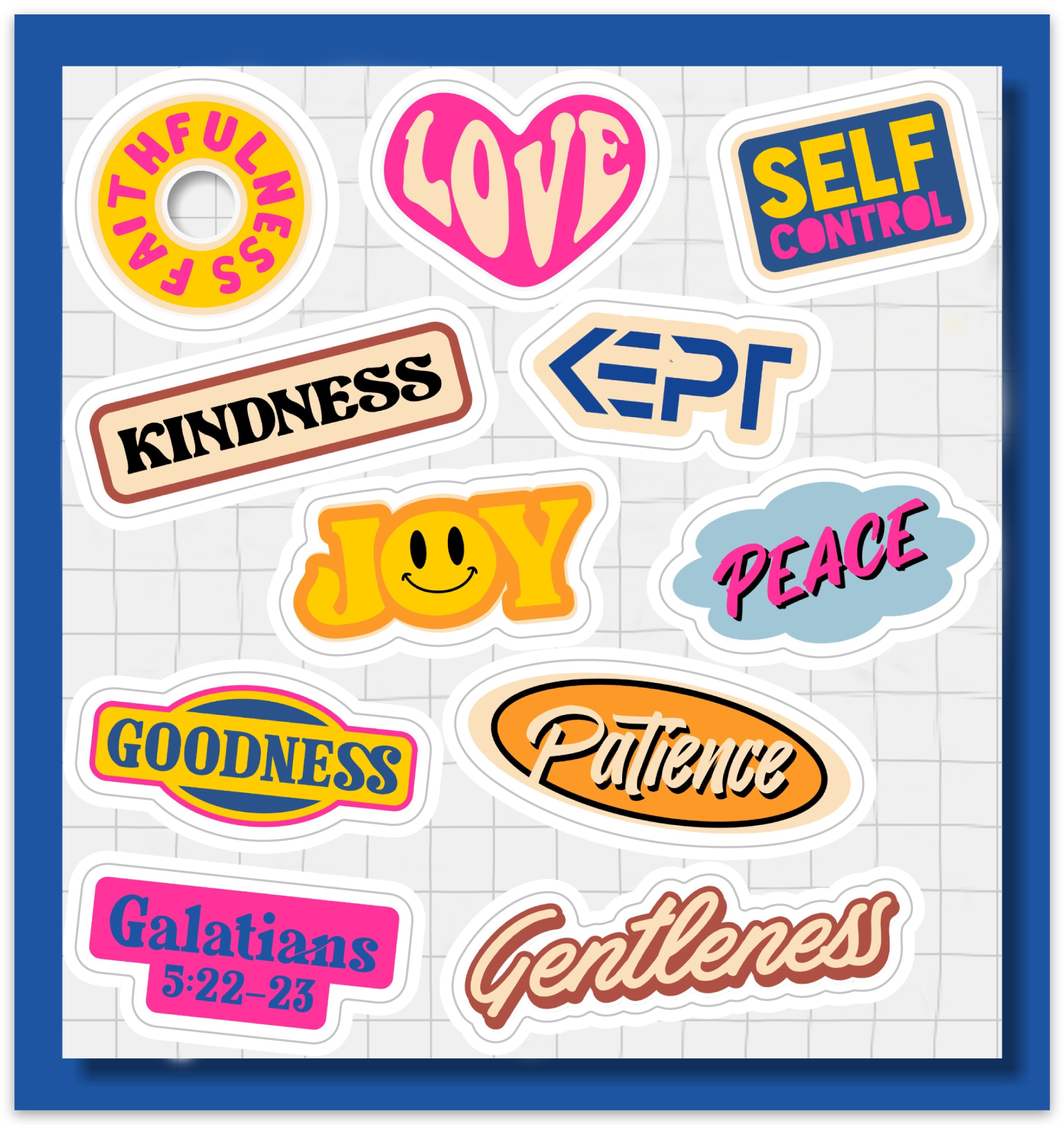 Get inspired with the Galatians 3:22 Sticker Set! Showcase the values of love, joy, peace, patience, kindness, goodness, faithfulness, gentleness, and self-control with this sticker sheet of 11 sized at 5" x 5.29". No laws can stand in the way of the powerful message these stickers carry.